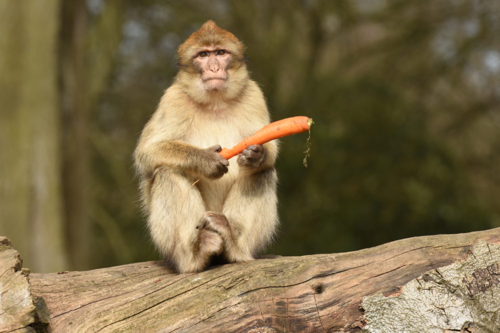 As we indulge ourselves in Easter eggs, the Barbary macaques are taking a leaf out of the bunnies’ book and eating lots of carrots to accompany their healthy diet of fruit, vegetables and seeds – much healthier than a chocolate egg.
